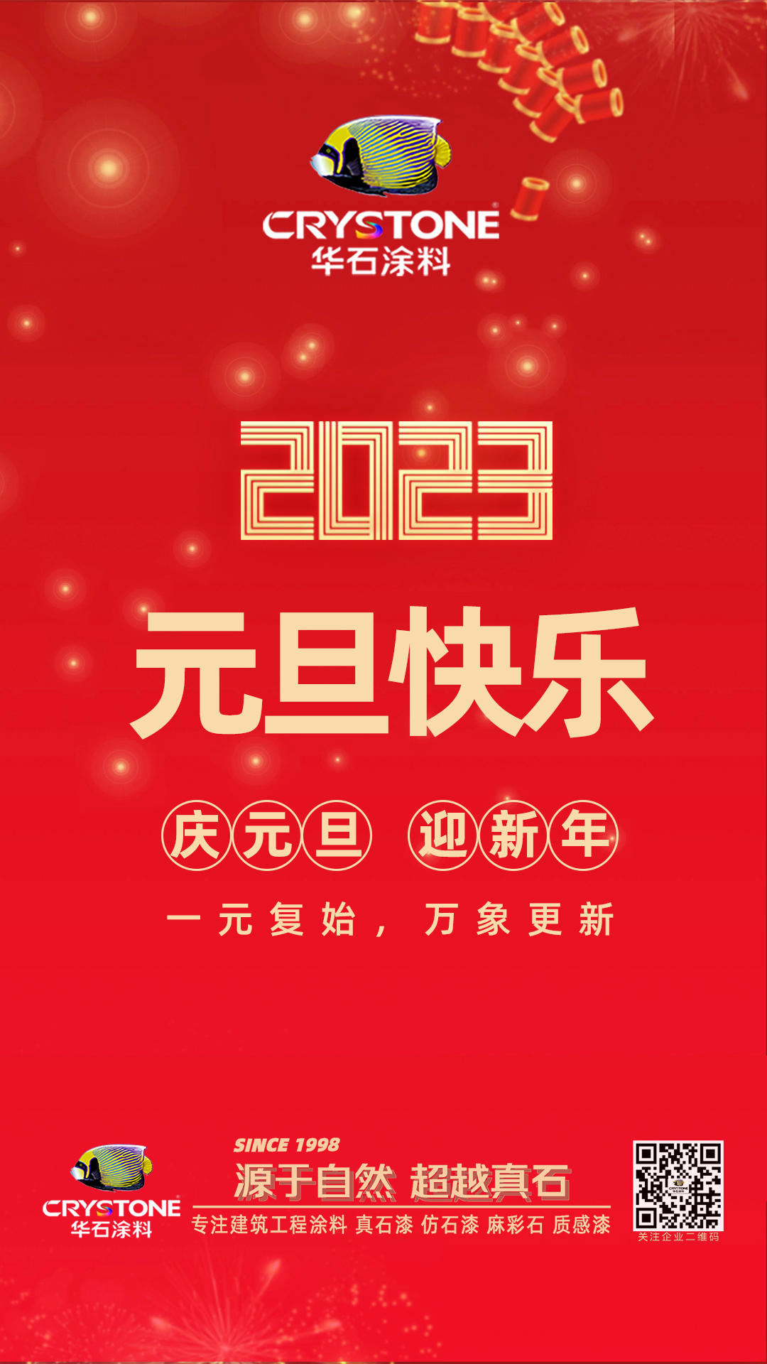 2023元旦到,掀開新的一頁,換上新的心情,踏上新的征程,開啟新的希望,開始新的開拓,華石涂料在此祝福大家在2023年收獲更多的成功和喜悅。