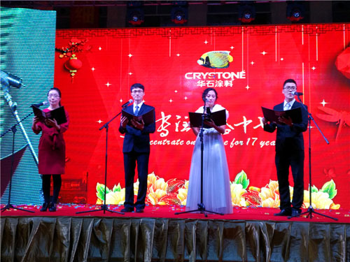 12月26日,在華石涂料廠區(qū)內(nèi)舉行了華石涂料17周年華誕慶典晚會(huì),華石涂料邀請全體員工及其家屬,廣東省涂料協(xié)會(huì)、五邑大學(xué)、江門職業(yè)技術(shù)學(xué)院以及江門市各級領(lǐng)導(dǎo)等嘉賓共聚一堂,喜迎這歷史時(shí)刻。