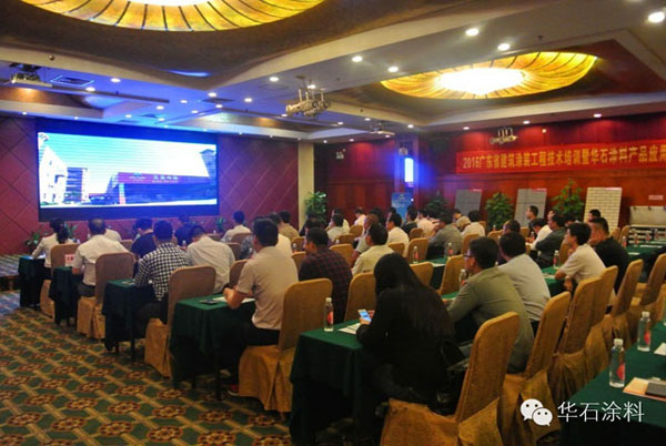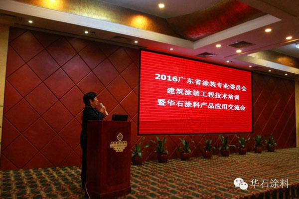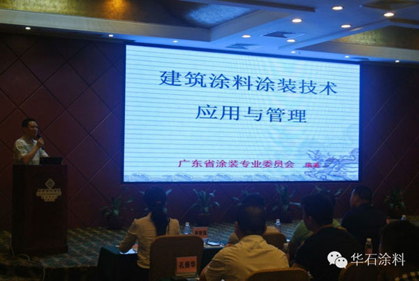 4月8日上午,“2016年廣東省涂裝專業(yè)委員會(huì)建筑涂料工程技術(shù)培訓(xùn)暨華石涂料產(chǎn)品應(yīng)用交流會(huì)”在江門麗宮酒店舉辦,本次培訓(xùn)交流會(huì)由廣涂協(xié)主辦,華石涂料承辦,由華石涂料市場部黃經(jīng)理主持會(huì)議。